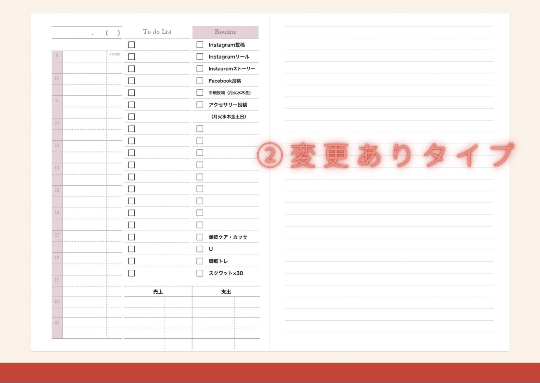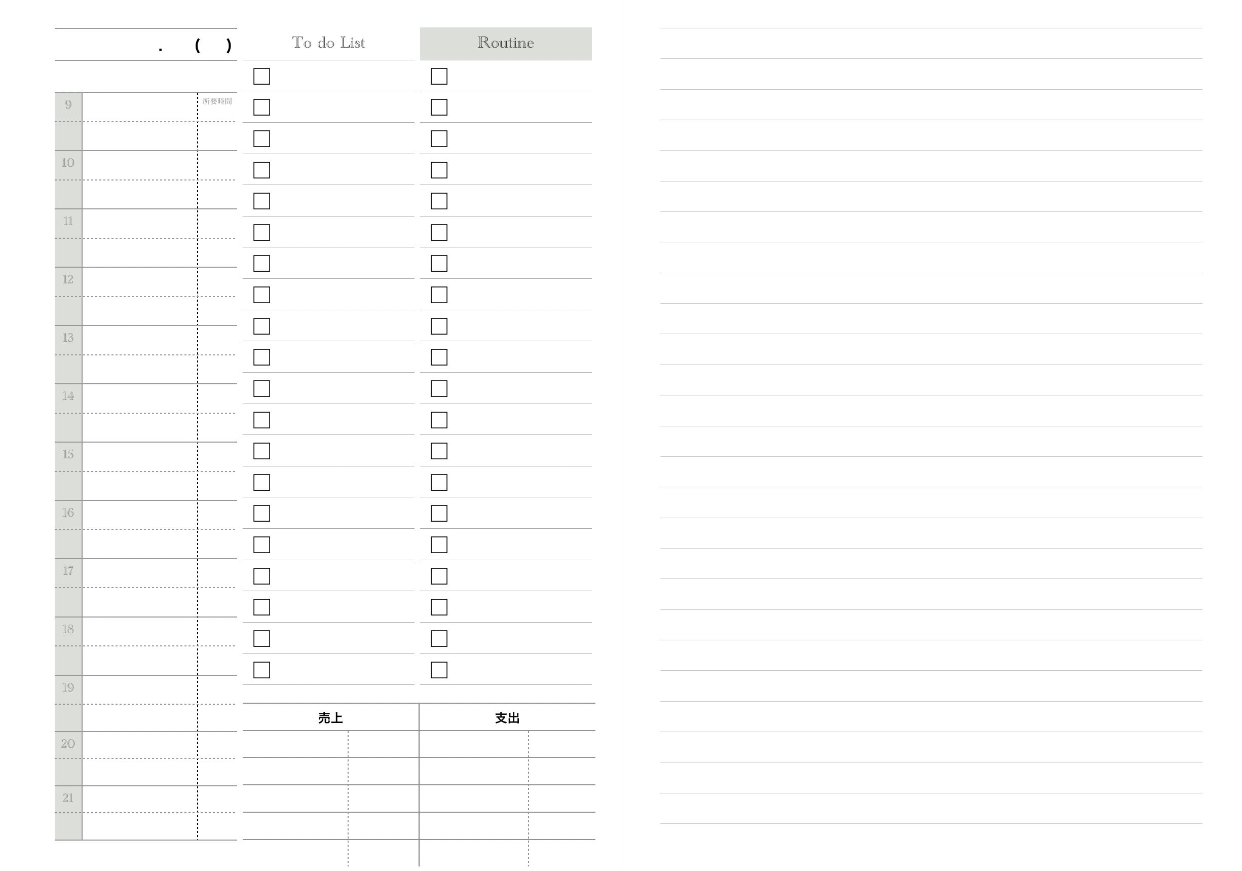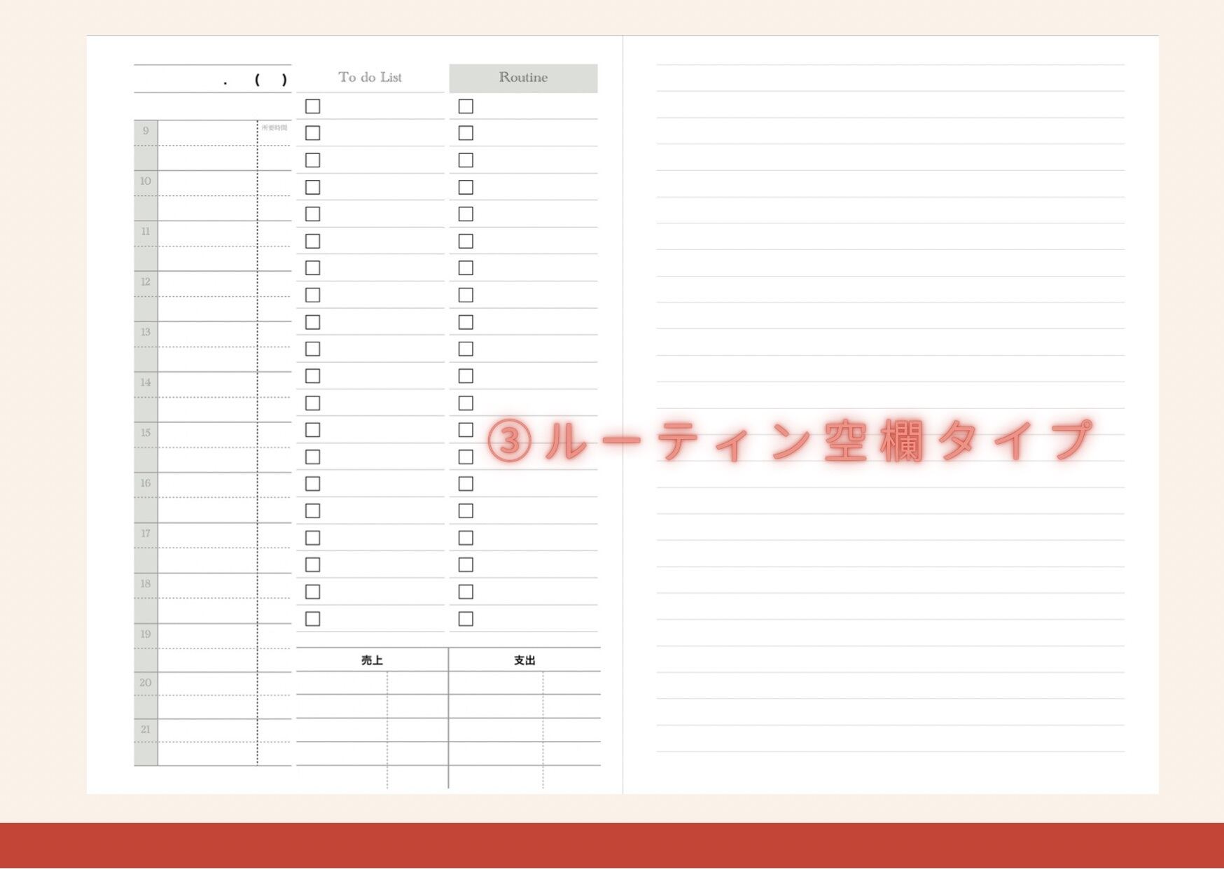 ルーティンが空欄で全てご自分で記入していただくタイプです。