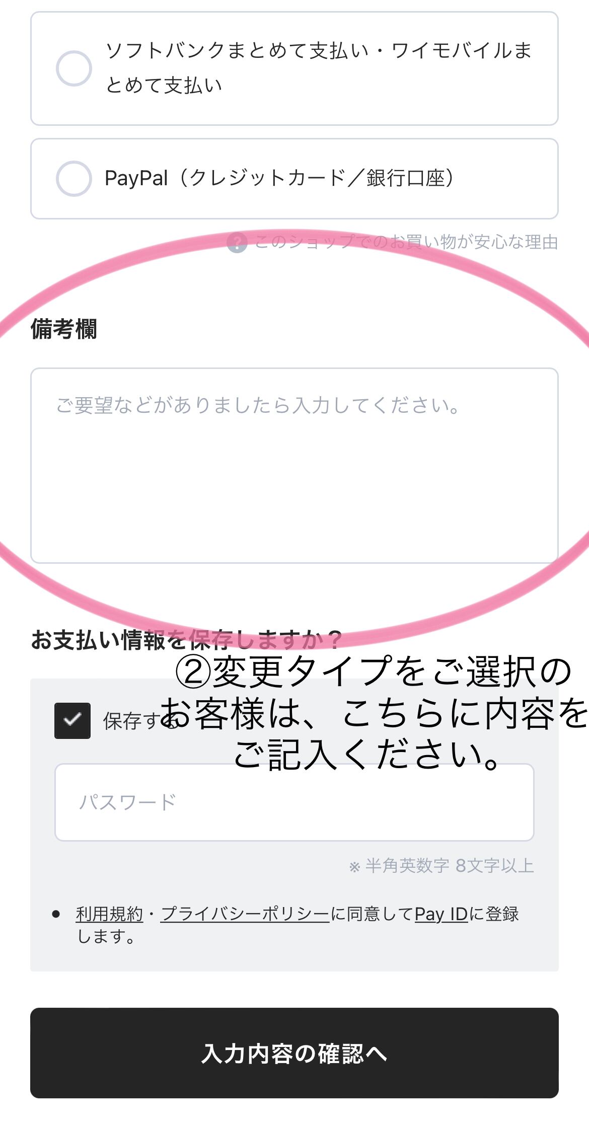 ✳︎②変更ありタイプの方は、備考欄に変更内容をご記入ください✳︎